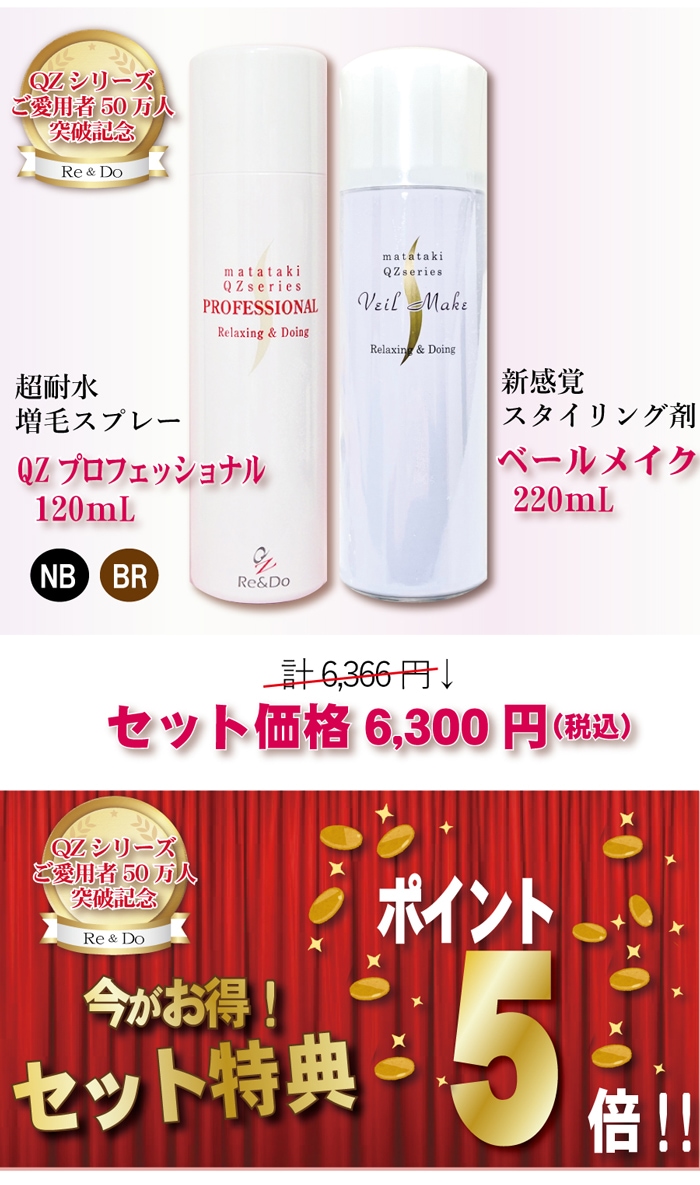 「QZプロフェッショナル120 ベールメイクセット」本格増毛と新感覚スタイリング剤のセット
